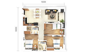 Căn hộ mẫu 2 Ngủ sẽ được xây dựng với diện tích 61m2. Cấu trúc căn hộ gồm: 2 phòng ngủ, 1 phòng bếp, 1 phòng khách, 2 nhà vệ sinh. Khu vực nhà vệ sinh bố trí thành ngăn tách biệt khu vực tắm đứng với bồn rửa, thuận tiện sử dụng hàng ngày. Thiết kế căn hộ hướng tới cặp vợ chồng có 1 – 2 con nhỏ.